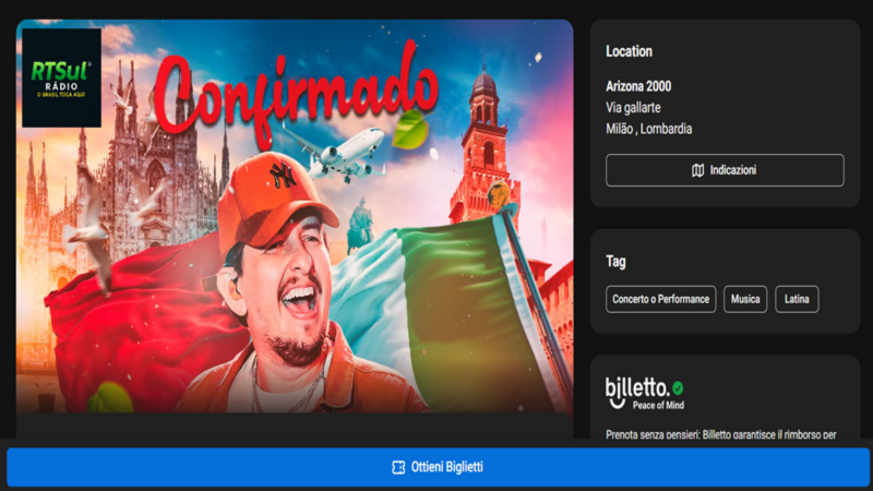 Thiago Meirelles ao vivo em Milão – 20 de setembro
